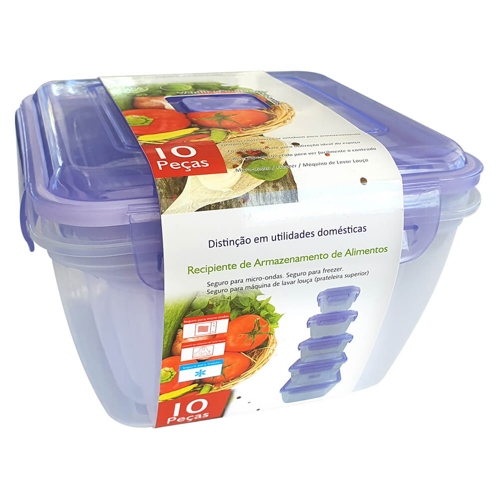 Este conjunto inclui 5 potes transparentes com charmosas tampas lilás, perfeitos para armazenar diversos itens de forma organizada e elegante. Eles são próprios para uso no micro-ondas e cada pote é hermeticamente fechado, impedindo a entrada e saída de ar. Os potes também possuem uma trava de segurança e uma saída de vapor. Por serem transparentes, permitem que você veja facilmente o conteúdo, enquanto as tampas lilás adicionam um toque de cor e estilo ao conjunto.