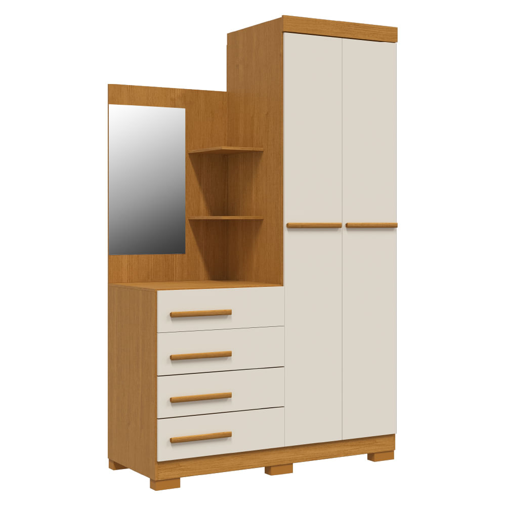 Guarda Roupa ACP Melissa 2 Portas e 4 Gavetas com Espelho - Cinamomo/Off White