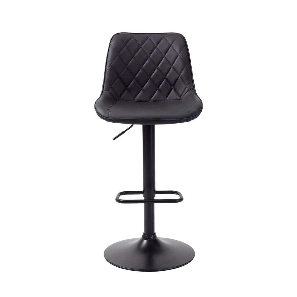 Com seu revestimento em tecido sintético preto e detalhes especiais na costura, esta banqueta é muito mais que um simples assento. Ela é uma declaração de estilo. O acabamento sofisticado do estofado traz aquela sensação de exclusividade que faz toda diferença na composição do seu espaço, seja na bancada da cozinha gourmet, no balcão do home office ou naquele cantinho especial do quarto. :)