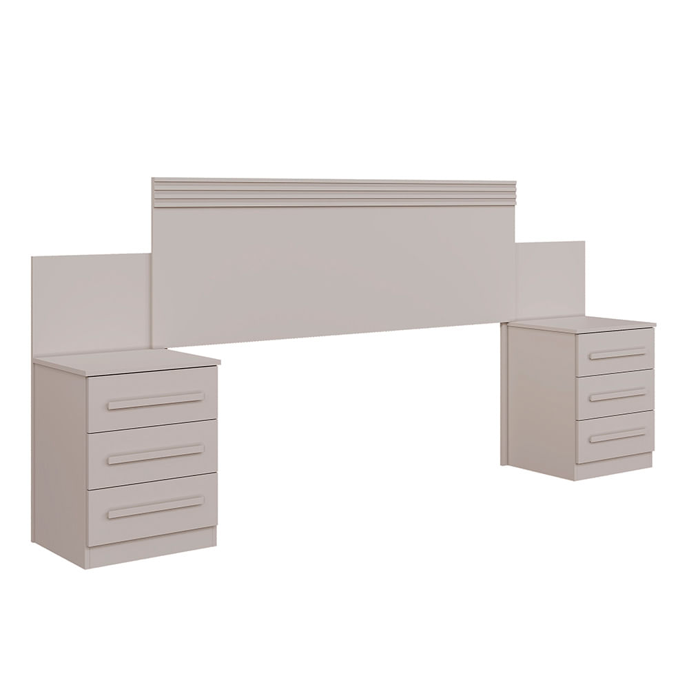 Ela conta com estrutura em MDP e um lindo designer. A mesa de cabeceira é fixa e possui três gavetas de 40cm de profundidade com sistema de abertura de corrediça telescópica.