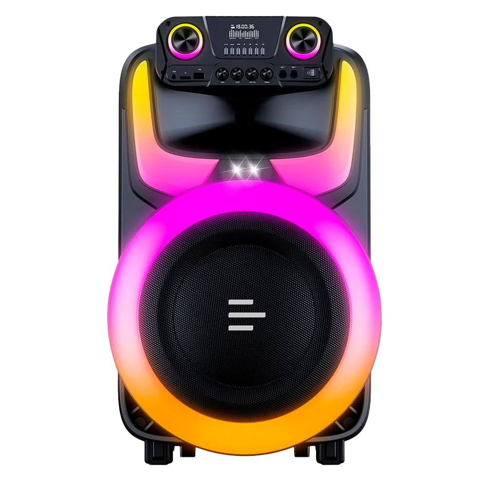 - Som de alta definição: 2 Alto falantes de 12 Polegadas