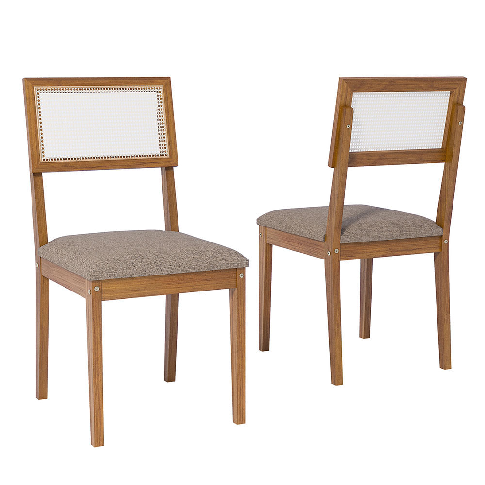 Conjunto 2 Cadeiras Cimol Palmas com Tecido em Linho - Madeira/Bege