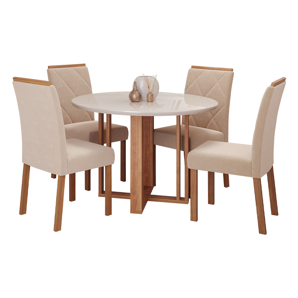 Conjunto de Mesa Cimol Flora 110cm Redonda com 4 Cadeiras Fernanda Linho - Nude