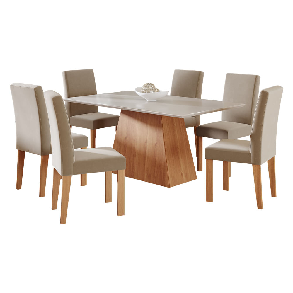 Conjunto de Mesa Cimol Sabrine 160x80cm com 6 Cadeiras Maia Veludo - Cinamomo/Joli