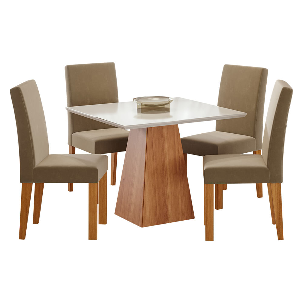 Conjunto de Mesa Cimol Sabrine 95x95cm com 4 Cadeiras Maia Veludo - Cinamomo/Joli