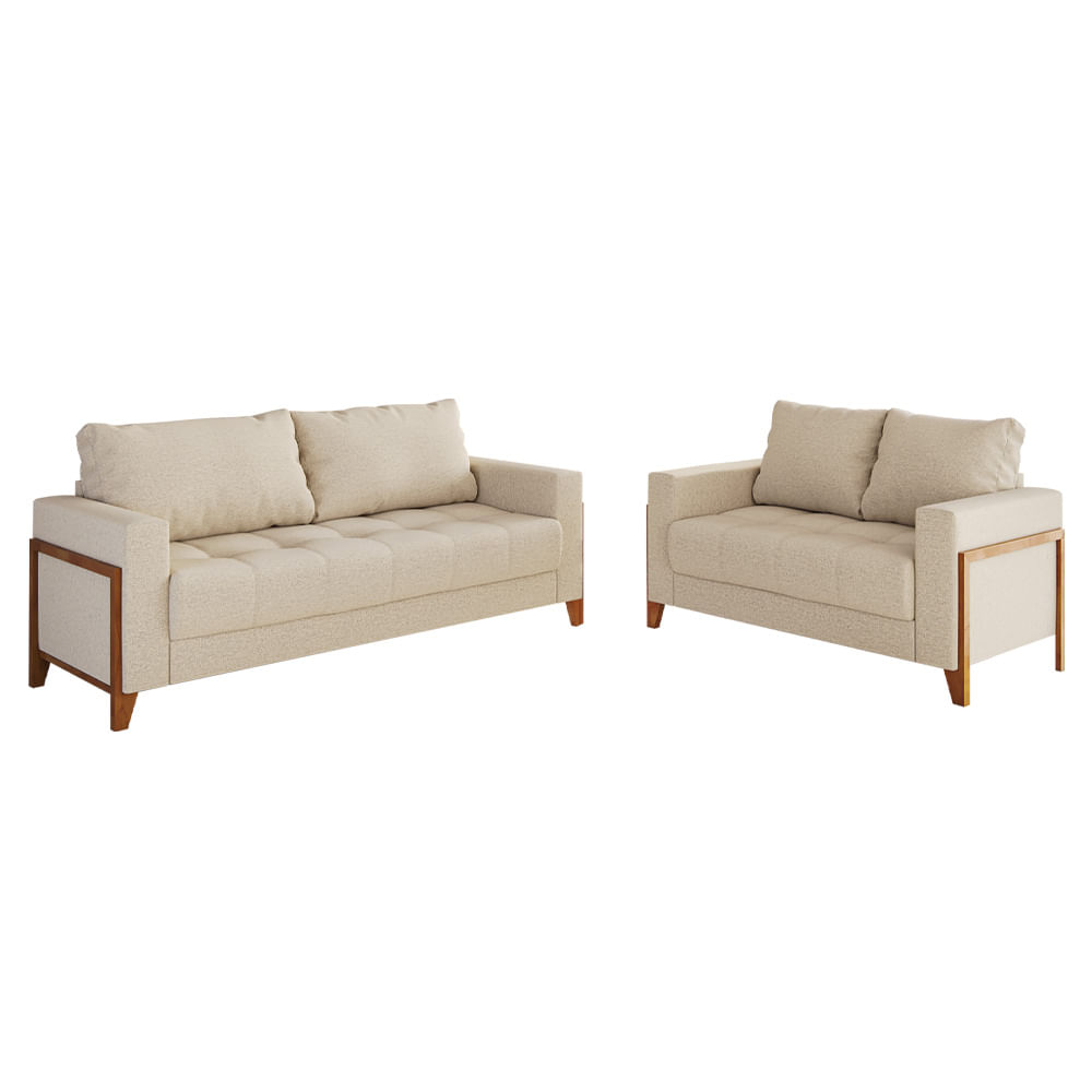 Conjunto de Sofás RMBM Sarah Living 150cm e 210cm com Tecido Linho - Bege