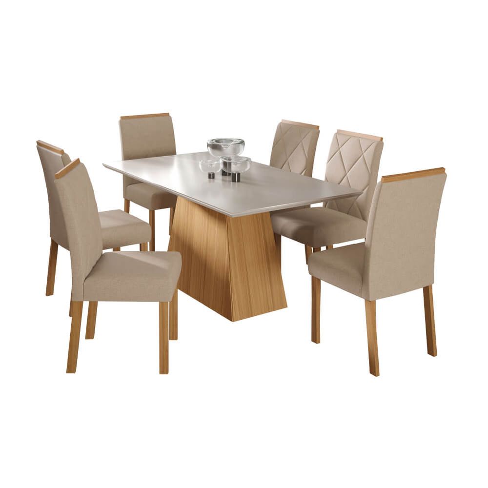 Conjunto Mesa Cimol Sabrine 160x80cm com 6 Cadeiras Tecido Veludo - Cinamomo/Nude