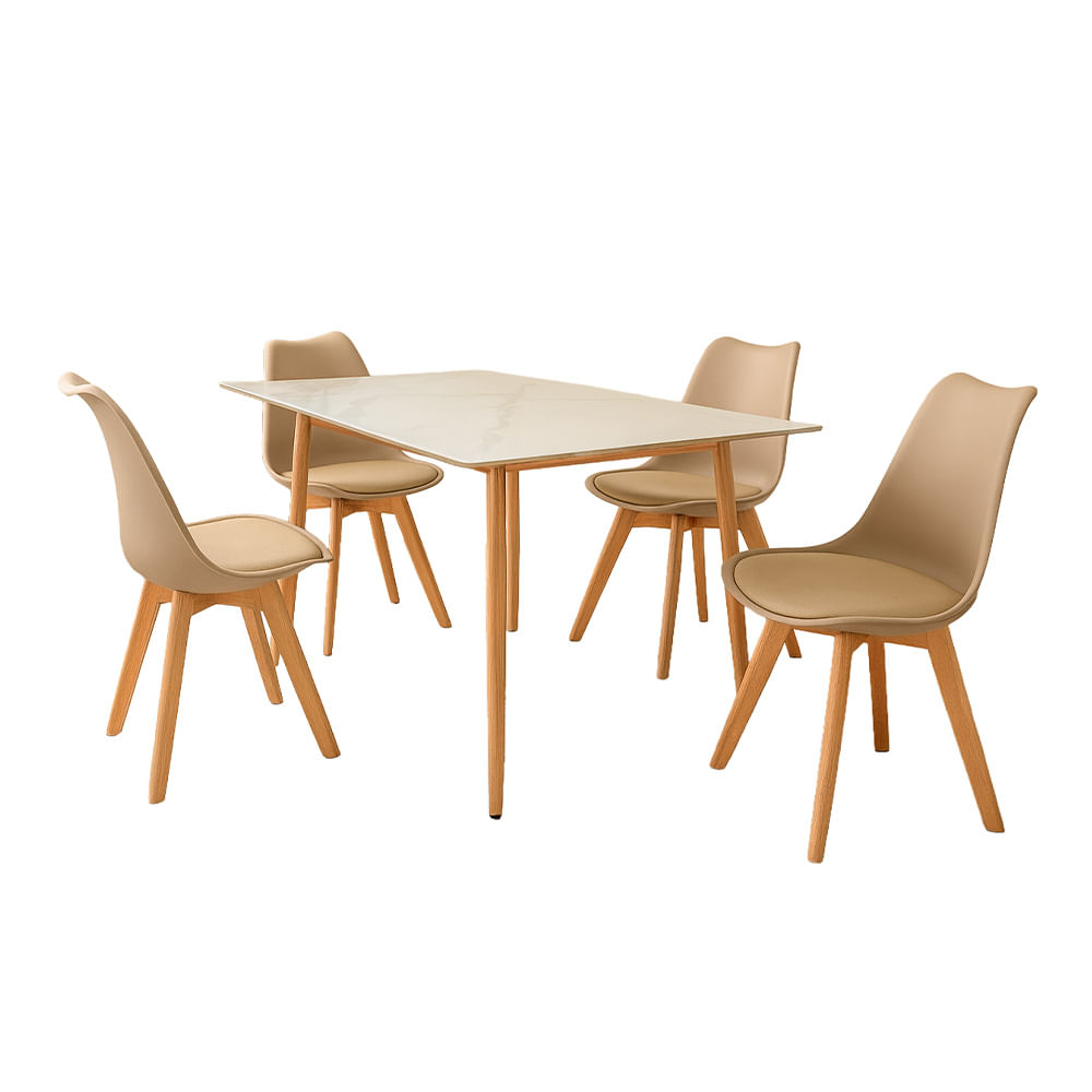 Conjunto Mesa Tianjin Diamante 120cm com 4 Cadeiras de Plástico Elomio Estofada - Branco/Marfim
