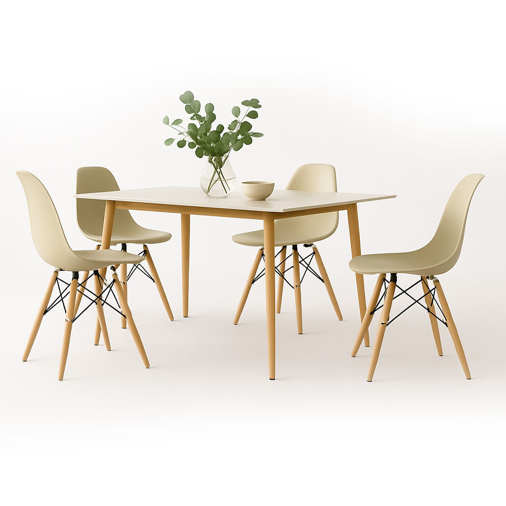 Conjunto Mesa Tianjin Diamante 140cm com 4 Cadeiras de Plástico Eiffel - Branco/Marfim