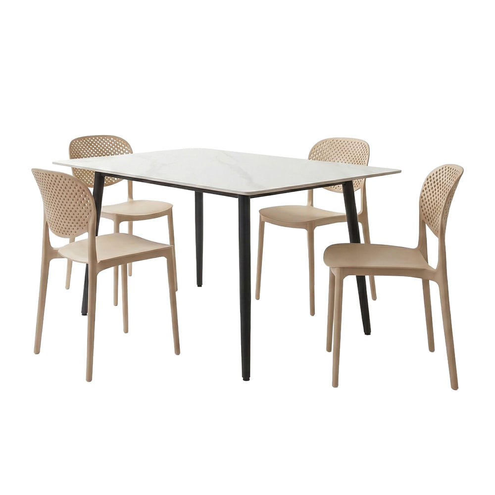 Conjunto Mesa Tianjin Diamante 140cm com 4 Cadeiras de Plástico Fenghe Kira - Branco/Preto