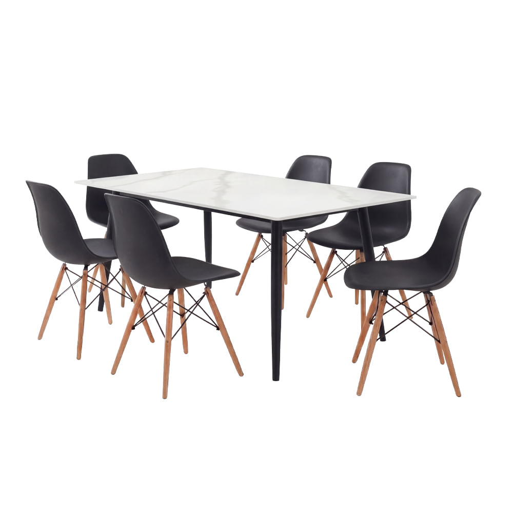 O Conjunto Mesa Tianjin Diamante com 6 Cadeiras de Plástico Eames Preta é a escolha perfeita para quem busca aliar sofisticação, conforto e funcionalidade no seu ambiente.