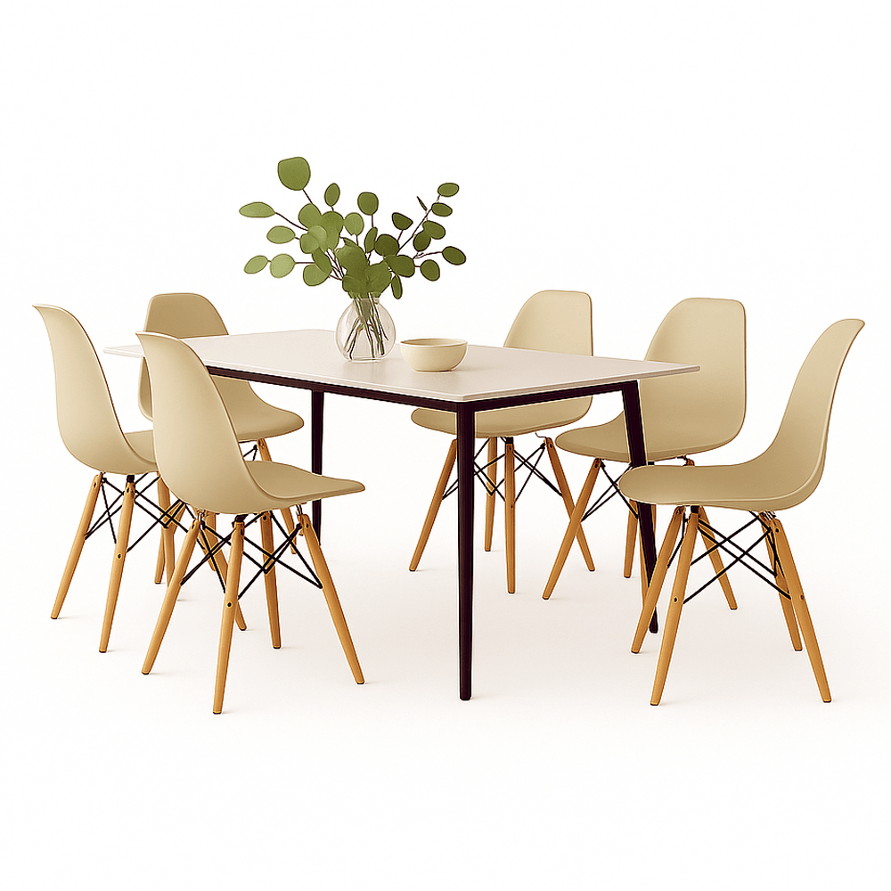 O Conjunto Mesa Tianjin Diamante 140cm com 6 Cadeiras de Plástico Eiffel é a escolha perfeita para quem busca aliar sofisticação, conforto e funcionalidade no seu ambiente.