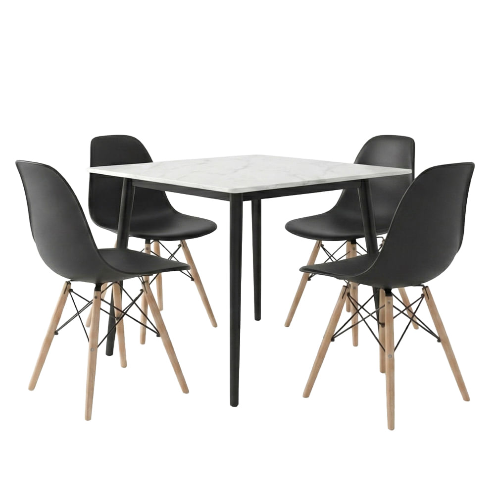 Conjunto Mesa Tianjin Diamante 80cm com 4 Cadeiras de Plástico Eames - Preto