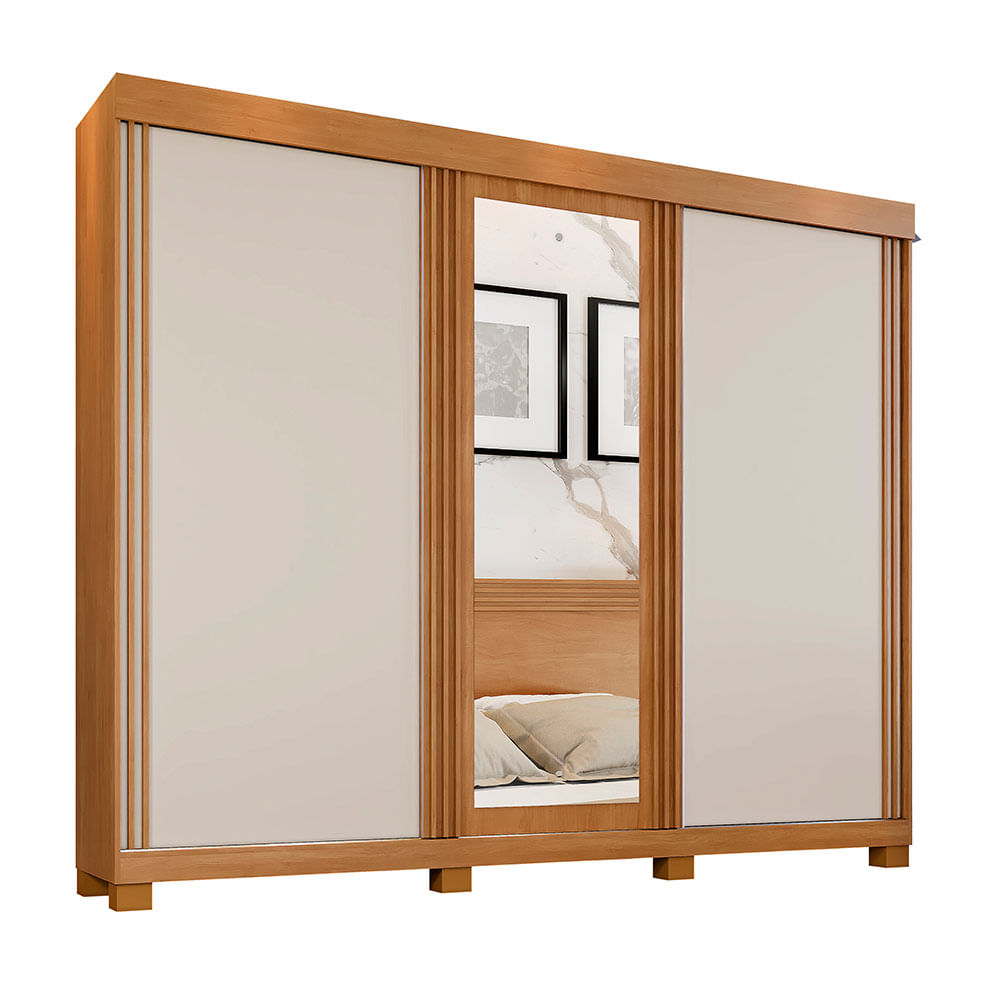 Guarda Roupa Benetil Siena 3 Portas com Espelho - Cinamomo/Off White