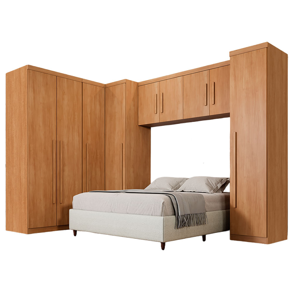 Com nove portas amplas, ele oferece espaço de sobra para acomodar roupas, acessórios e tudo o que você precisa manter sempre à mão no dia a dia. Seu sistema de fechamento suave proporciona mais conforto e durabilidade, evitando batidas e ruídos ao abrir ou fechar. As três gavetas com corrediças telescópicas garantem deslizamento leve e silencioso, ideais para armazenar peças menores com praticidade e segurança. O cabideiro em alumínio oferece resistência para manter suas roupas sempre bem organizadas e sem amassados, enquanto os puxadores amadeirados agregam um toque sofisticado e natural ao visual do móvel. As prateleiras internas foram estrategicamente posicionadas para otimizar o espaço e facilitar a organização de diferentes itens, desde roupas dobradas até caixas e calçados. Além disso, o design modulado com espaço central permite acomodar box ou cabeceira de até 158 cm, integrando-se perfeitamente ao quarto e oferecendo um visual moderno e funcional.