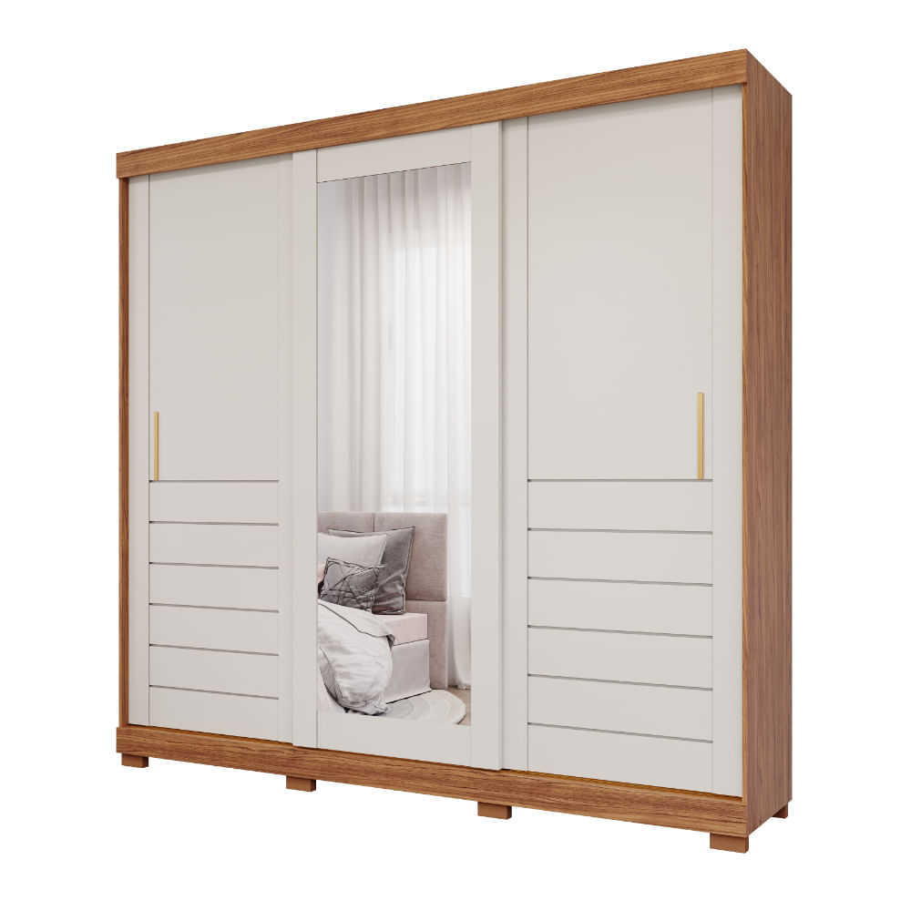 Guarda Roupa Panan Cecília 3 Portas com Espelho - Cinamomo/Off White