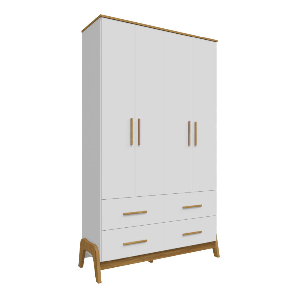 Guarda Roupa Peroba Guti Infantil 4 Portas - Branco/Amêndoa