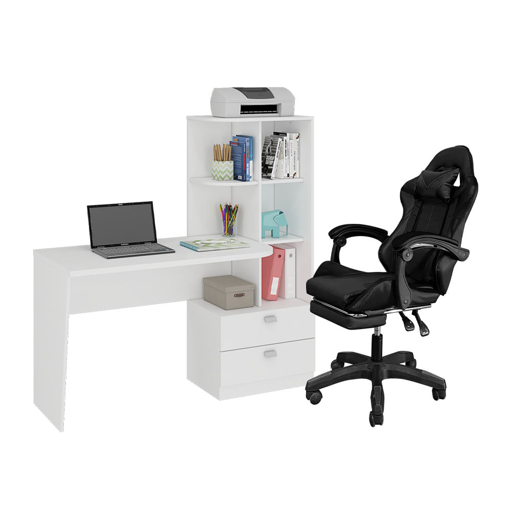 Kit Mesa para Computador Permóbili Elisa + Cadeira Gamer Guardian 730-5 - Branco/Preto