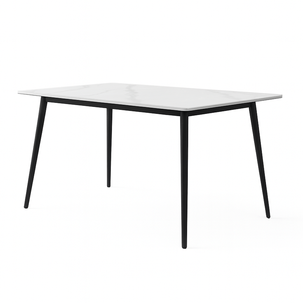 Mesa Diamante Tianjin 120x70cm com Tampo de Pedra - Branco/Preto